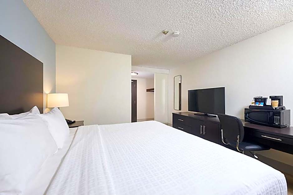 Located on the upper level, this room features a flat-screen cable TV and a refrigerator.